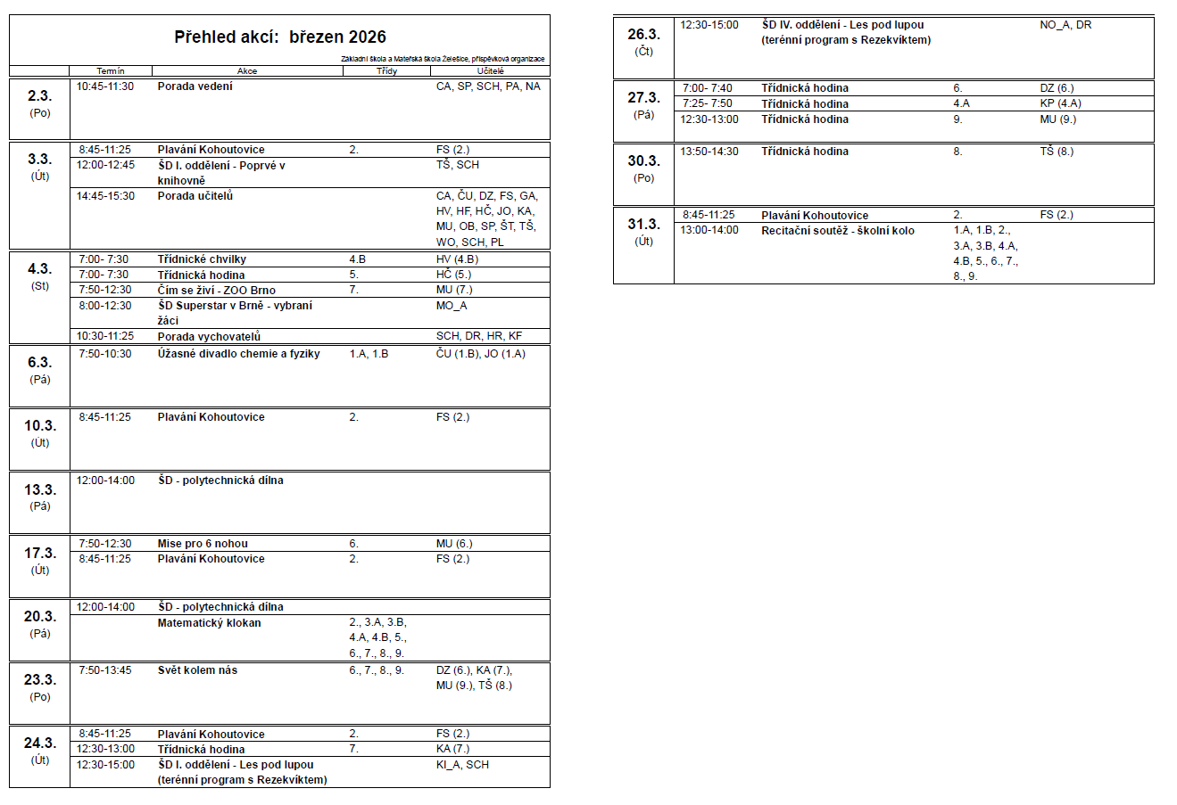 Plán akcí najdete v Bakalářích.