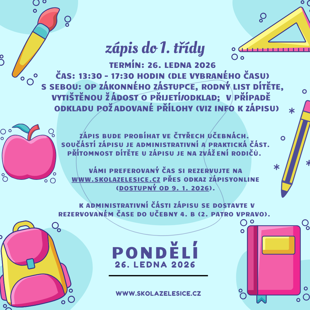 • Zápis do 1. třídy na školní rok 2026/27
